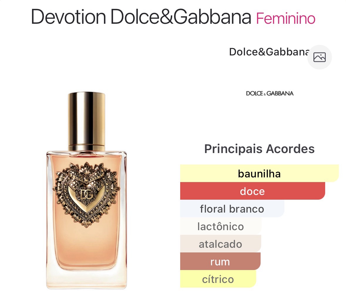 Devotion de Dolce&Gabbana é um perfume Oriental Baunilha Feminino. Devotion foi lançado em 2023. O perfumista que assina esta fragrância é Olivier Cresp. A nota de topo é: Limão Cristalizado. As notas de coração são: Panacotta, Flor de Laranjeira e Rum. A nota de fundo é: Baunilha.