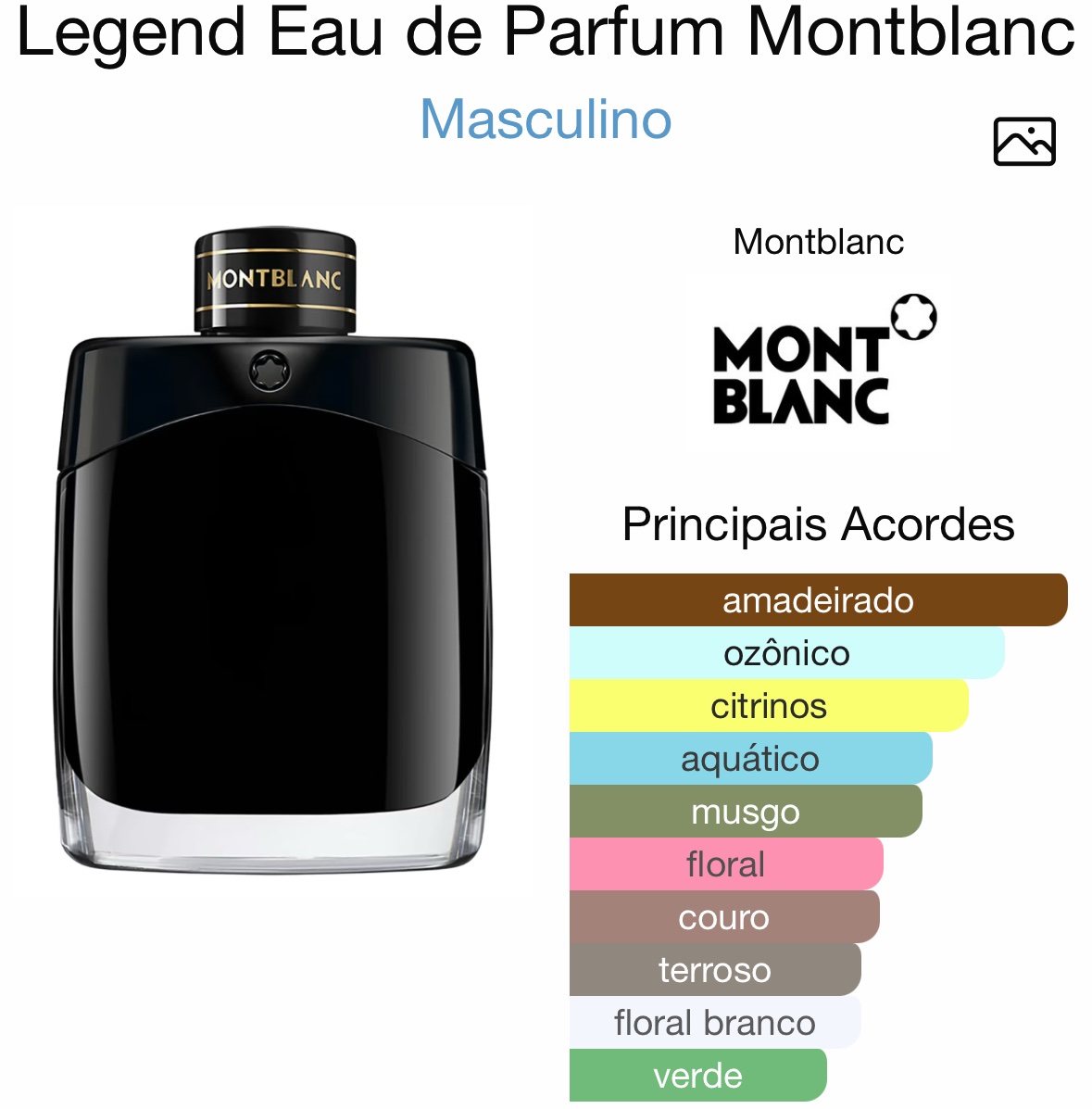 Legend Eau de Parfum de Montblanc é um perfume Couro Masculino. Legend Eau de Parfumfoi lançada em 2020. O perfumista que assina esta fragrância é Olivier Pescheux. As notas de topo são: Folhas de Violeta e Bergamota. As notas de coração são: Notas Amadeiradas, Jasmim e Magnólia. As notas de fundo são: Musgo de Carvalho e Couro.